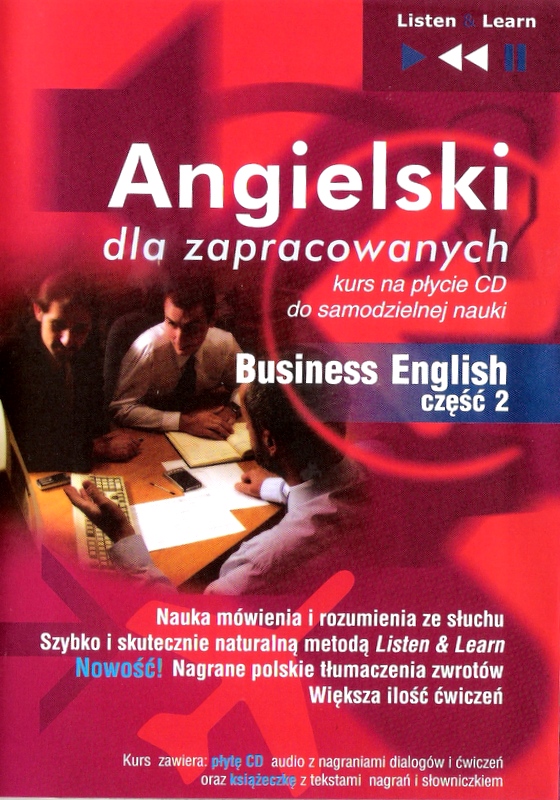 Druga część kursu audio do samodzielnej nauki ze słuchu na poziomie średnio zaawansowanym, przeznaczonego dla osób szukających pracy za granicą i tych, którzy używają języka angielskiego w pracy. Kurs rozwija umiejętności sprawnej komunikacji w typowych sytuacjach biznesowych - podczas służbowych podróży, prezentacji oraz ważnych negocjacji. Ułatwia też przygotowanie się do egzaminów FCE i CAE. Specjalnie opracowane ćwiczenia umożliwiają naukę w dowolnym miejscu i czasie - w drodze do pracy, w podróży, w domu.