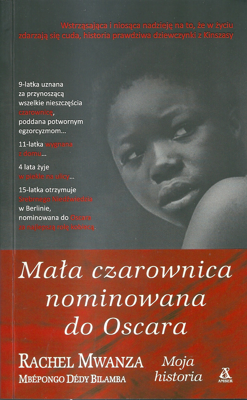 Wstrząsająca i niosąca nadzieję na to, że w życiu zdarzają się cuda, autobiografia dziewczynki z Kinszasy. 9-latka uznana za przynoszącą wszelkie nieszczęścia czarownicę, poddana potwornym egzorcyzmom… 11-latka wygnana z domu… 4 lata żyje w piekle na ulicy… 15-latka otrzymuje Srebrnego Niedźwiedzia w Berlinie, nominowana do Oscara za najlepszą rolę kobiecą. „Jestem tą, która przeżyła… Moją opowieścią nie chcę wzbudzać litości, lecz nadzieję". Rachel, przez osiem lat szczęśliwa dziewczynka, żyje w dostatniej rodzinie w Kongo. Ojciec „pracuje w diamentach". Matka wierzy w zabobony, zaklęcia i jasnowidzów. Jeden przepowiedział, że córka przyniesie nieszczęście… Pierwsze egzorcyzmy: biała kaczka wali dziobem w czoło dziewczynki, żeby wygnać z niej demona. Od tej pory jest napiętnowana przez rodzinę, która zaczyna się rozpadać. Ojciec coraz częściej używa przemocy wobec matki. Wreszcie wysyła ją z dziećmi do stolicy, Kinszasy. Rodzina poznaje biedę, nędzę, choroby. Winna jest Rachel. Tak jak odejścia ojca, sprowadzenia głodu i powodzi. Kolejne egzorcyzmy: kościół: naga jedenastolatka stoi przed mężczyznami, którzy przyciskają jej Biblię do czoła, plują w twarz wodą, każą coś pić i krzyczeć: „Jestem czarownicą!" I wreszcie po godzinach tortur Rachel krzyczy… Kościół: naga stoi w rozkroku nad palącym się pudełkiem zapałek. Płomień ma przepędzić z niej demona… Wygnana z domu, cztery lata spędza wśród dzieci slumsów wielomilionowego miasta. Ofiara gwałtu, przemocy, znajduje kolejne opiekunki wśród nieletnich prostytutek. I nagle zdarza się cud. Wygrywa casting do głównej roli w filmie kanadyjskiego reżysera. Dziewczynka z piętnem wiedźmy zagra Wiedźmę wojny. A potem… Rok 2012: Berlin - niepiśmienna Rachel Mwanza odbiera Srebrnego Niedźwiedzia za najlepszą rolę kobiecą. Los Angeles - kroczy po czerwonym dywanie nominowana do Oscara za najlepszą rolę kobiecą. Nowy Jork - Festiwal Tribeca. Robert de Niro wręcza jej nagrodę za najlepszą rolę. Potem Montreal, Toronto, Dakar… 17 prestiżowych nagród. „Mam nowe życie, ale nie zapominam, skąd przyszłam". Tak Rachel Mwanza kończy swoją autobiografię. [ www.wydawnictwoamber.pl ]