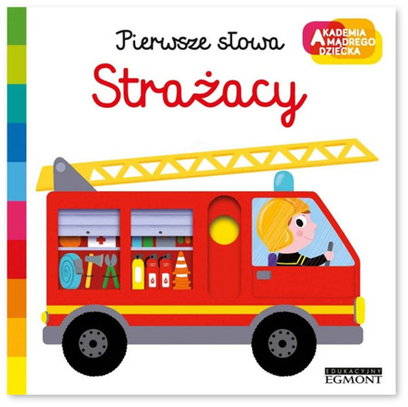 Wszystko co maluch chciałby wiedzieć o zawodzie strażaka: jak wygląda strój strażacki, jakiego sprzętu używa i jakimi pojazdami się poruszać. "Pierwsze słowa” to seria książeczek dla dzieci i rodziców do wspólnego oglądania i czytania. Ruchome elementy, doskonale wspierają rozwój maluchów i rozwijają sprawność manualną. Piękne kolorowe ilustracje sprawiają, że dzieci z przyjemnością odkrywają świat wokół siebie i chętnie uczą się nowych słów. [egmont.pl]