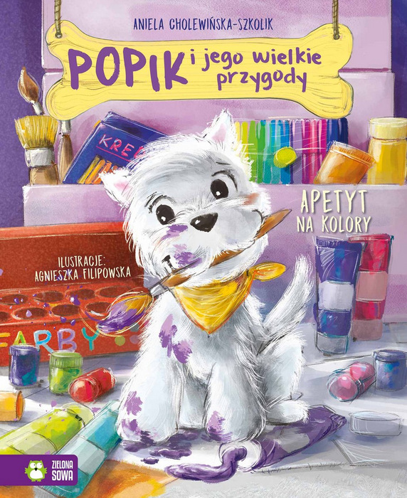 Znacie Popika? To piękny BIAŁY terierek, bardzo zadowolony ze swojego życia. Jednak gdy pewnego dnia Misia zaczyna zachwycać się KOLOROWYMI ptakami, biel nagle przestaje się podobać Popikowi… Czuje się taki… bezbarwny. Psiak postanawia zdobyć więcej kolorów. Tylko jak? Sięgnijcie po drugi tom przygód Popika, psiego towarzysza Misi. Tym razem poza pogonią za kolorami przed Popikiem także inne przygody: poszukiwanie piłki zagubionej wśród jabłek, wizyta u prawdziwego psa wystawowego, a nawet wyprawa na jarmark! Co jeszcze może przydarzyć się w niezwykłym psim życiu Popika?