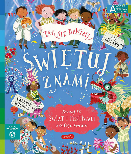 Z tej bogato ilustrowanej książki dowiesz się, jak bawią się dzieci na wszystkich kontynentach i jak świętują ważne wydarzenia. Wybierz się na małpią ucztę do Tajlandii; porównaj, jak świętuje się karnawał w Rio de Janeiro, a jak w Wenecji; sprawdź, co jada się w Grecji na Wielkanoc, a co w Meksyku na Święto Zmarłych. Przekonaj się, że święta bywają różne, lecz wszędzie to czas dobrej zabawy! "Świętuj z nami" to kolejna propozycja serii Chcę wiedzieć. Akademia Mądrego Dziecka, skierowanej do starszych przedszkolaków i najmłodszych uczniów. To tematy, które fascynują dzieci, nowoczesne ilustracje, które w przyjazny sposób przedstawiają różne zagadnienia i ułatwiają zrozumienie treści. Książki doskonale wpisują się w popularny nurt współczesnej edukacji - edutainment (od słów education - edukacja i entertainment - rozrywka), z którego czerpiemy, rozbudowując Akademia Mądrego Dziecka o pozycje dla starszych dzieci. Zaspokajamy ciekawość w sposób, który gwarantuje dobrą zabawę - a zdobywanie wiedzy jest jej częścią.