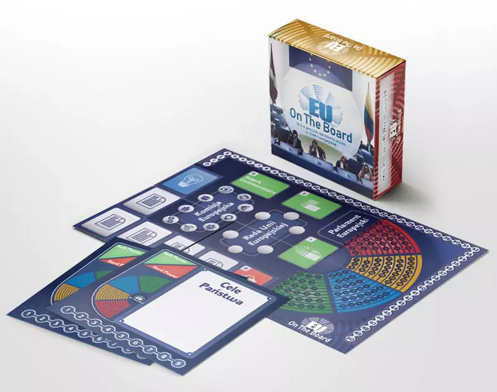 EU in Board to gra, w której gracze wcielają się w przedstawicieli państw członkowskich Unii Europejskiej. Próbują ustanowić nowe unijne prawa lub nie dopuścić do przyjęcia rozwiązań forsowanych przez inne kraje. Każdy kraj w Unii ma swoje cele. Niektóre domagają się zawieszenia strefy wolnego handlu, inne chcą powstania europejskich sił obronnych, jeszcze inne dążą do przyjęcia Pakietu Mobilności. Swoje cele kraje realizują za pomocą swoich komisarzy, posłów do Parlamentu Europejskiego, ministrów w Radzie UE oraz tzw soft and hard power. Za przeforsowanie praw, na którym zależy wybranemu państwu otrzymuje się punkty, można je też zdobyć za odrzucenie praw. Wygrywają ci, którzy wykażą się najlepszym zmysłem strategicznym Grę EU on Board opracowało krakowskie stowarzyszenie Europe4Youth.
